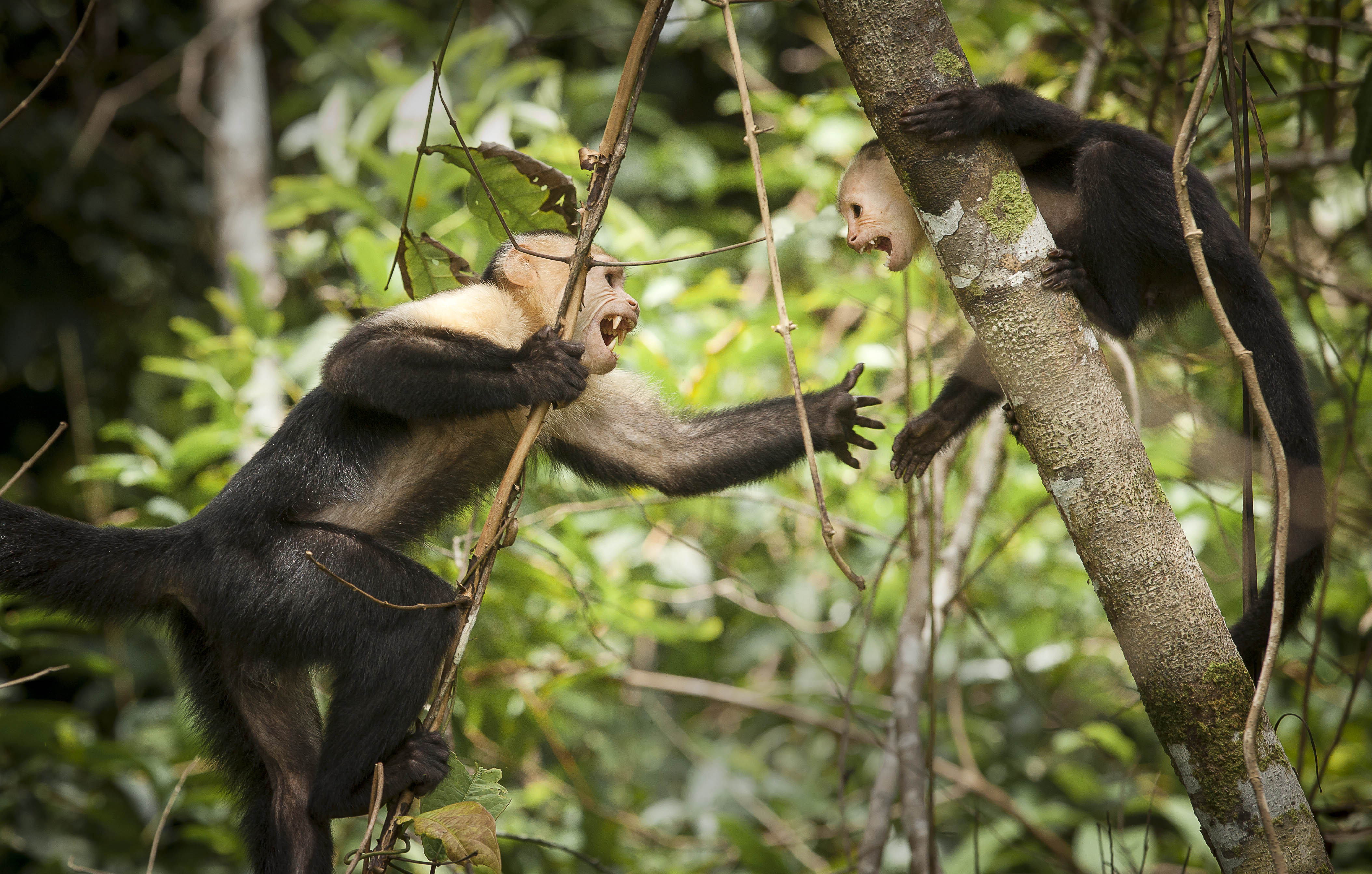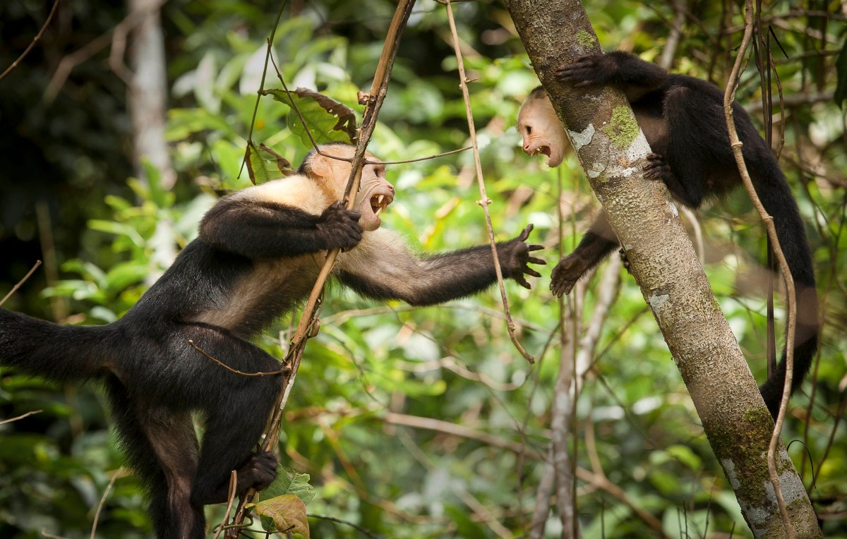White-faced capuchins having a heated discussion.